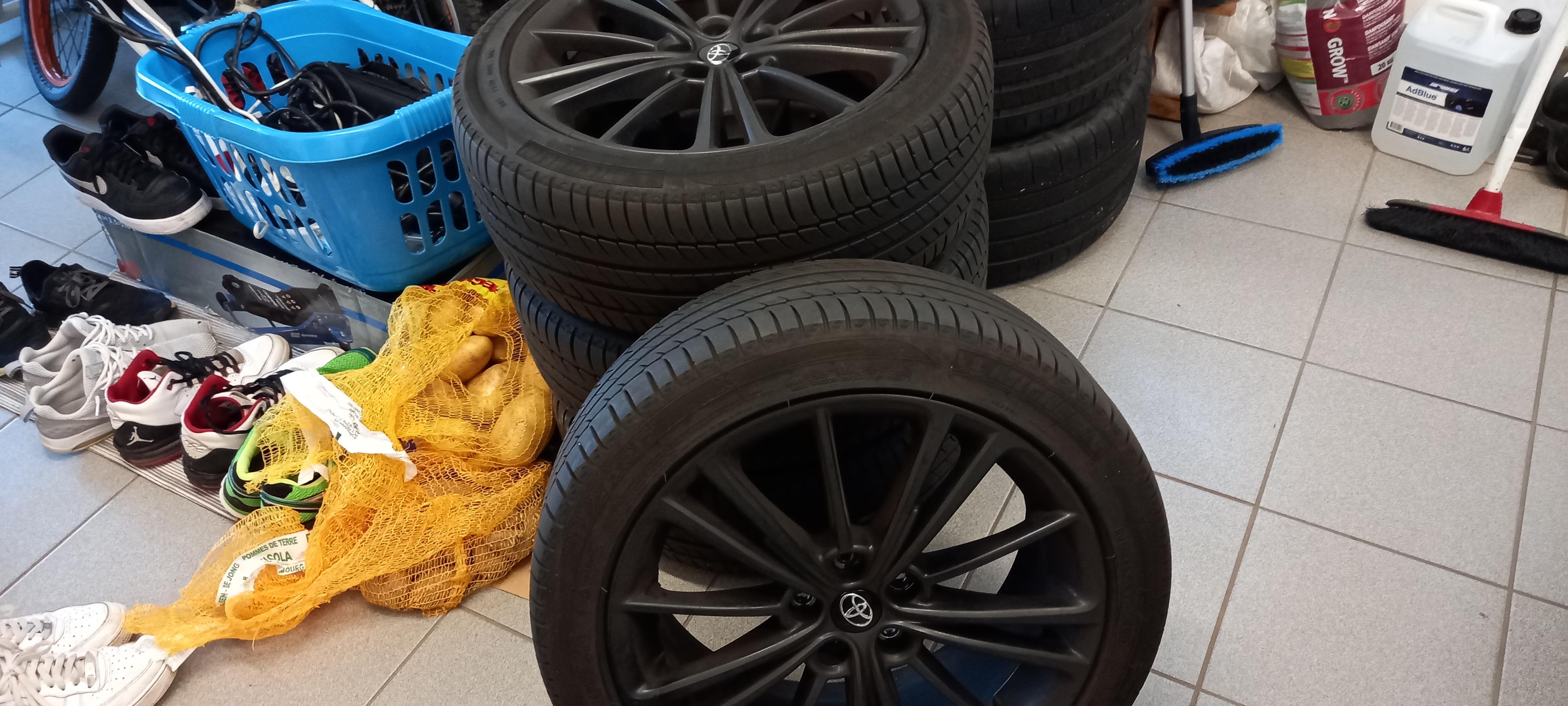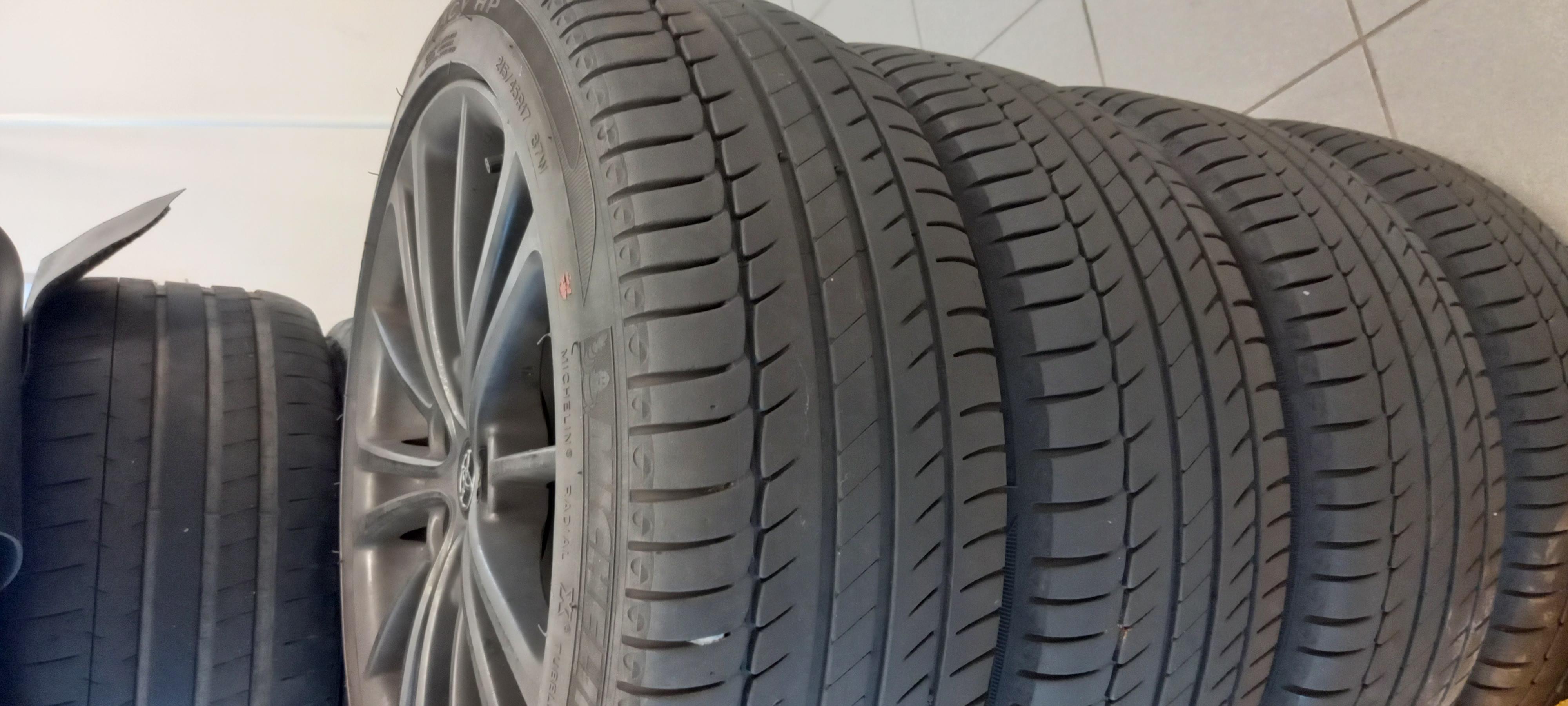 jantes alu noir Toyota 5x100 avec pneus été Michelin primary 215/45 R17, tbé.